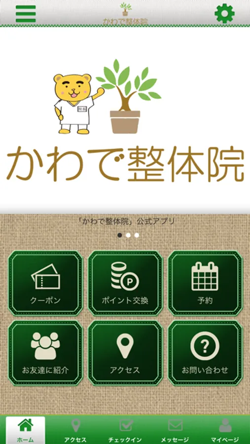 このアプリでは、かわで整体院の最新情報の受け取りや便利な機能を使う事ができます。