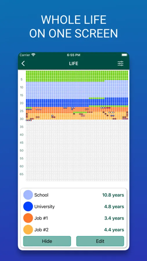 - Add important moments and chapters of your life and have a bird's eye view your life so far