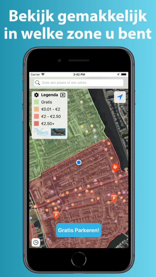 • Bekijk de parkeerzones in iedere stad die u wilt. U kunt zelfs direct navigeren en de dichtstbijzijnde gratis parkeerplek bij uw zoekopdracht vinden.