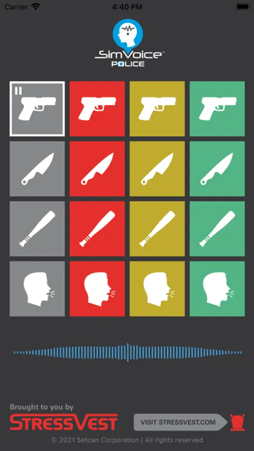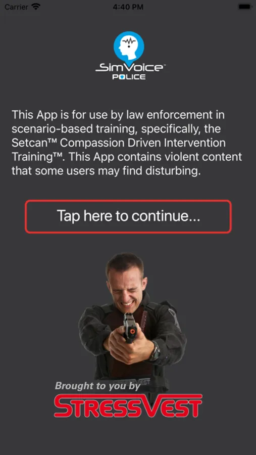 The purpose of SimVoice Police is for use by law enforcement in scenario-based training, specifically, the Setcan™ Compassion Driven Intervention Training™. SimVoice Police contains examples of auditory hallucinations similar to what a person with a mental disorder, such as paranoid schizophrenia, might hear in various scenarios when they are approached by police. The role player in the training will wear wireless headphones to hear and react to the audio and the instructor uses the app to control the message of the voices, while the students interact with the role player. SimVoice Police is a tool to give law enforcement a better understanding of what people who experience auditory hallucinations might be going through and to train for handling these interactions properly.