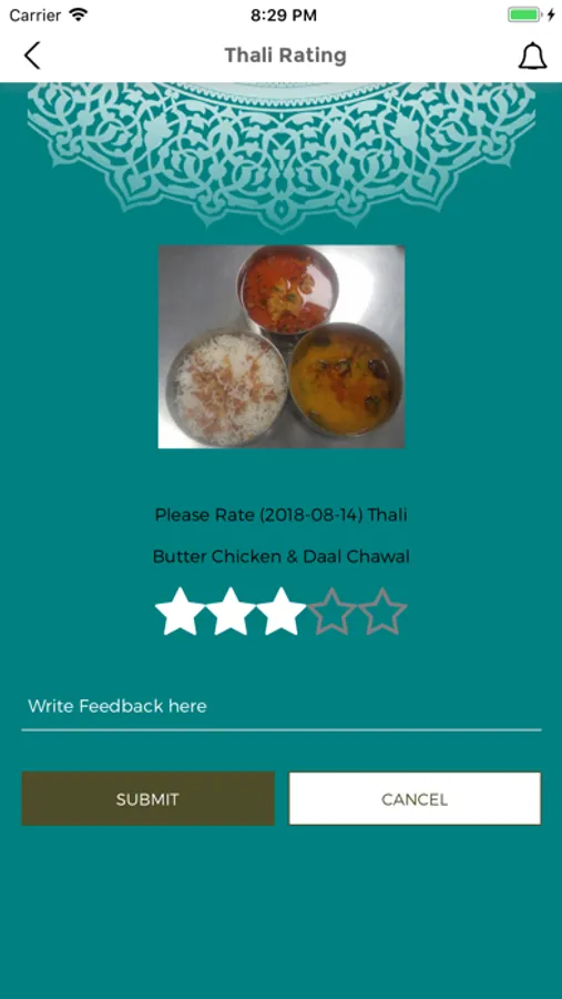 - Give rating and feedback for each day, to help FMB team improve FMB thali system.