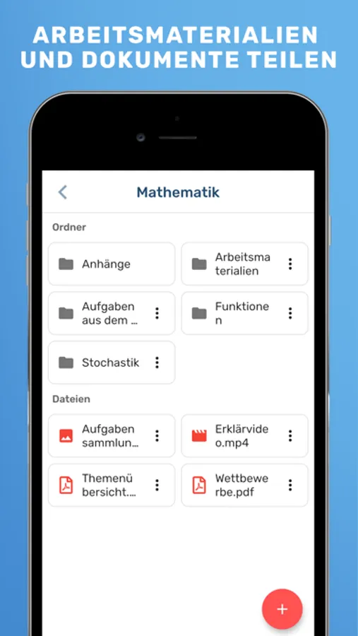 Dateiablage: Alle Unterrichtsmaterialien aus dem Unterricht von der Schule kannst du über die Dateiablage geordnet mit deinen Mitschüler:innen, Lehrkräften und Eltern teilen.
