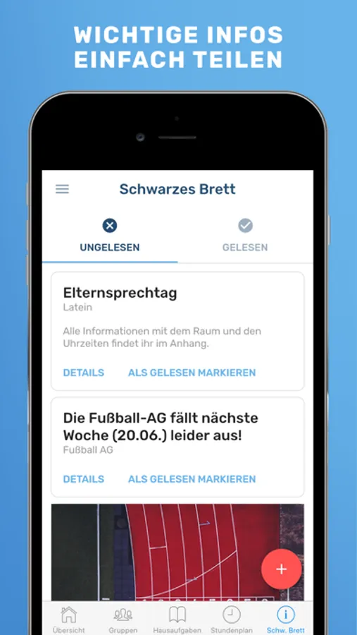 Infozettel: Diese verschwenden viel Papier im Schulplaner und gehen schnell verloren. Dank Sharezone kannst ebenfalls die Infozettel in deinem Schulplaner mit deiner Schulklasse teilen - digital, schnell, einfach und nachhaltig. Besonders hilfreich ist das für den Schulalltag der Eltern.