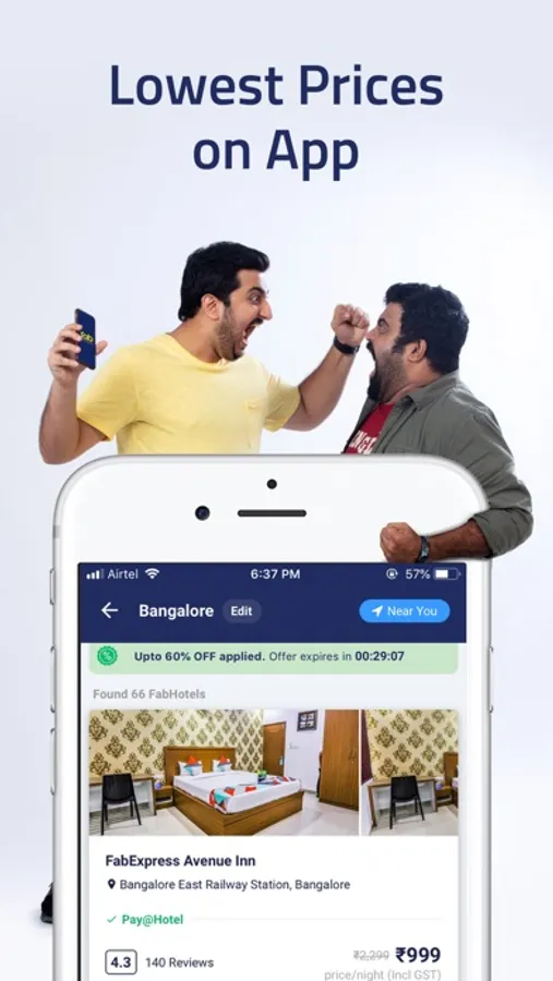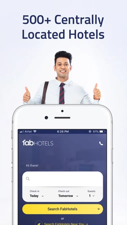 Choose from over 1400+ hotels pan India to get the best room deals with our online hotel booking app. Find the best places to stay for your business trips, solo trips or vacations with attractive hotel discounts. Explore great hotel deals, and compare hotel prices, star ratings, amenities and get the best offers on hotel room booking for your summer vacation in 2023. We have made hotel booking in India easy for you. Book room, check hotel reviews, and get competitive hotel rates with FabHotels as per your budget.