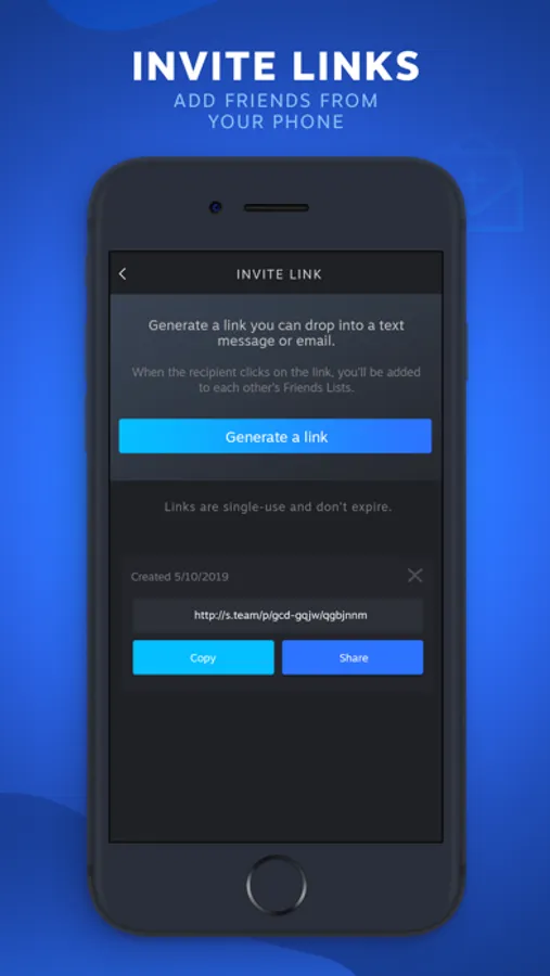 Invite Links – Add new friends on Steam with a link. Generate an invite link you can text or email.