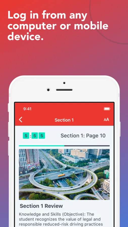 → Your progress syncs automatically across all of your devices. You can start your drivers ed course on your smartphone, and finish it on your parent's smartphone, we don't judge.