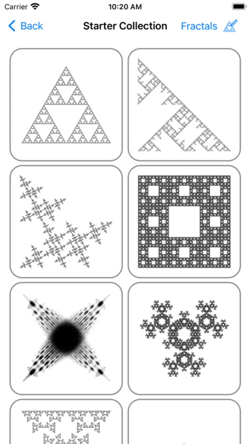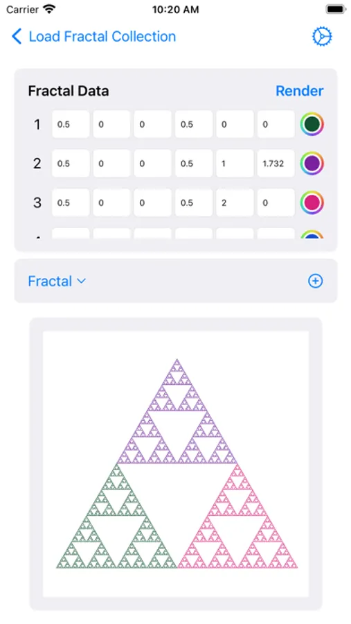 There is a set of fractal images in the app that can be recreated, or you can created any other ifs fractals on your own. There is also a tutorial video that explains how to write systems of equations to get the numbers needed to create fractals. Once the systems of equations are created, you can use substitution, elimination, or matrices to solve it and render the fractals.