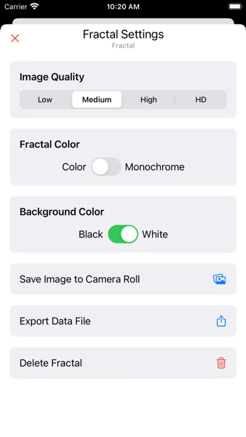 This Fractal Generator is designed to render fractal images. It creates iterated function system (ifs) fractals based off a set of numbers that can be found with systems of equations. These images are typically self-similar in the sense that they are made up of smaller images of themselves.