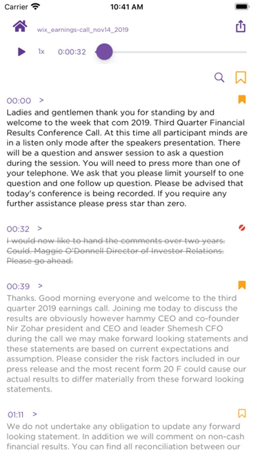 -view and bookmark the transcript