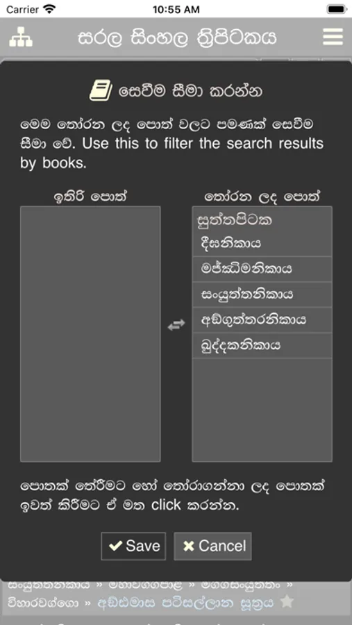 You can easily read suttas in the Pali Tripitaka and the corresponding Sinhala Translations by using this app.