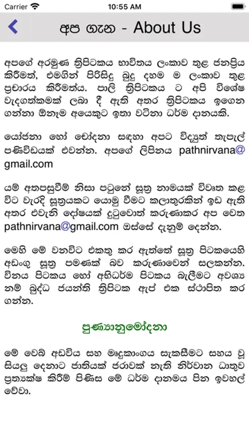 The objective of the app is to promote pure Buddhism among Sri Lankans. Please share your feedback and suggestions : admin@pitaka.lk