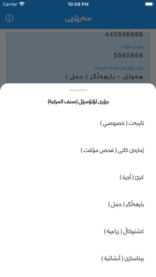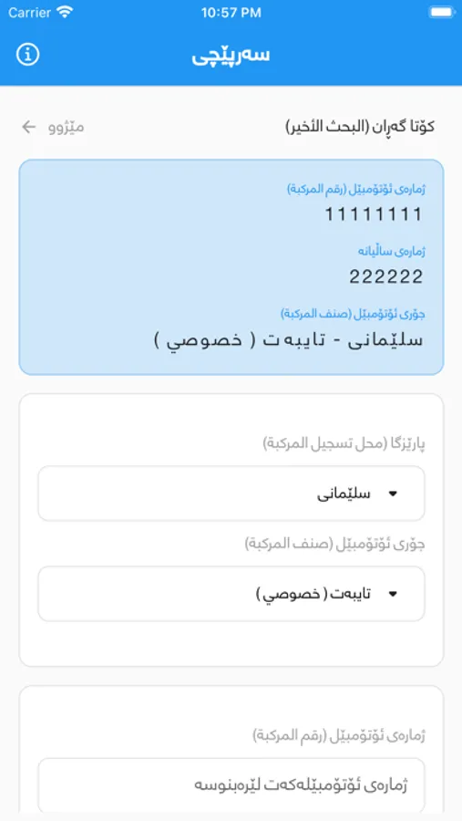 ئەم بەرنامەیە ڕوکارێکی سادەی هەیە دەتوانیت زانیاری سەرپێچی بۆ ئەم جۆرە ئۆتۆمبێلانە وەربگریت (تايبهت ( خصوصي ) - فحص مؤقت - کرێ ( أجرة ) - بارهەڵگر ( حمل ) - کشتوکاڵ ( زراعية ) - بیناسازی ( أنشائية ) - ماتۆڕ سکل ( دراجات ) - حكومي ) بۆ بۆ هەمو پاریزگاکانی کوردستان و عێراق.