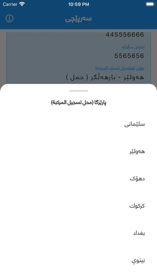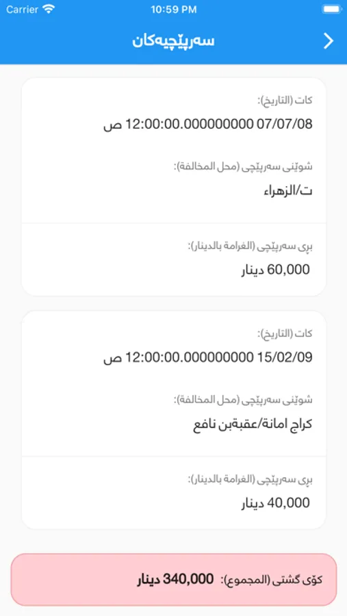 بۆ وەرگرتنی زانیاری دەربارەی ئەو سەرپێچیانەی کە کردوەتە بە ئۆتۆمبێلەکەت وەک خێرا ڕۆیشتن یان ڕاگرتن لە شووێنی ڕێگە پێنەدراو، وە گشت سەرپێچییەکانیتر.