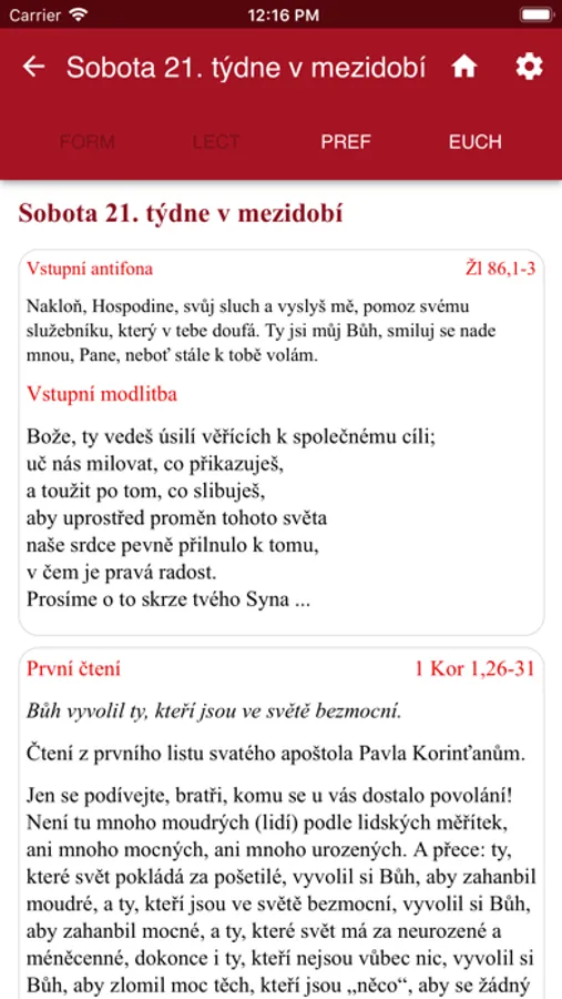 Vydává Liturgie.cz. Aplikace je určená pro účast na mši v cizím jazyce nebo pro přípravu na liturgii. Obsahuje mešní formuláře, biblická čtení, preface, eucharistické modlitby, mešní řád, přímluvy a liturgický kalendář. Kromě toho jsou uvedeny základní odpovědi ke mši v latině, angličtině, němčině, francouzštině, italštině a španělštině. Aplikace nenahrazuje platně schválení liturgické knihy nezbytné ke sloužení eucharistie. Umožňuje nastavení velikosti i typu písma a barevného schématu.