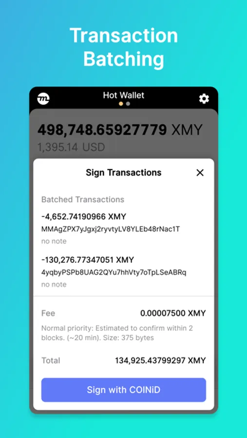 - Transaction batching. Save space on the blockchain and pay lower fees!