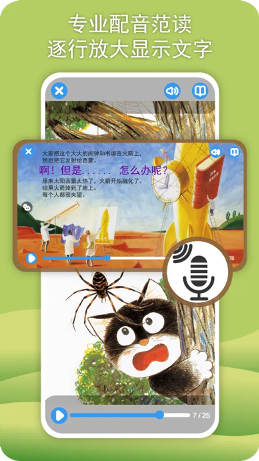 3.文本逐行放大显示,既解决了小屏幕的文字阅读难题,又能让孩子更加专注文字,轻松认识字形,提前两年实现独立阅读!
