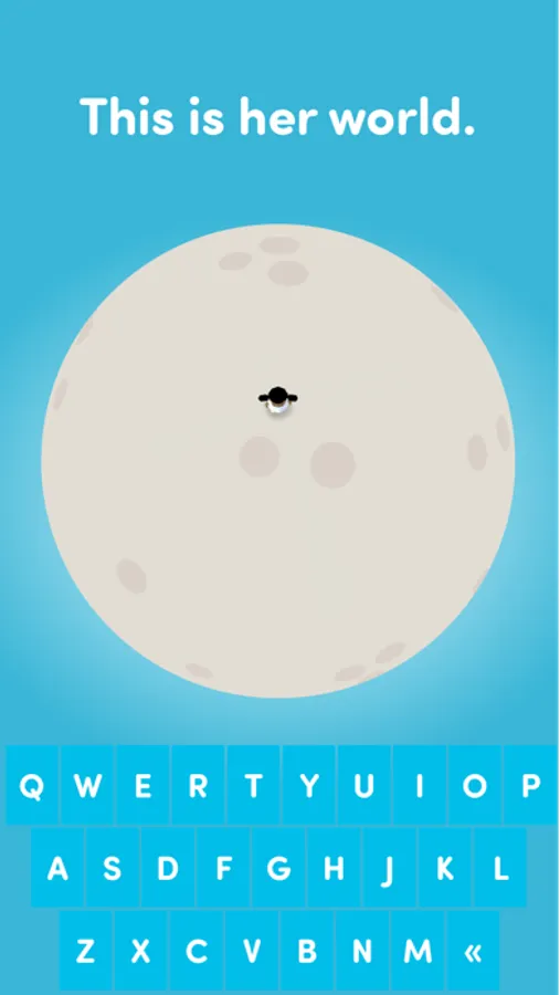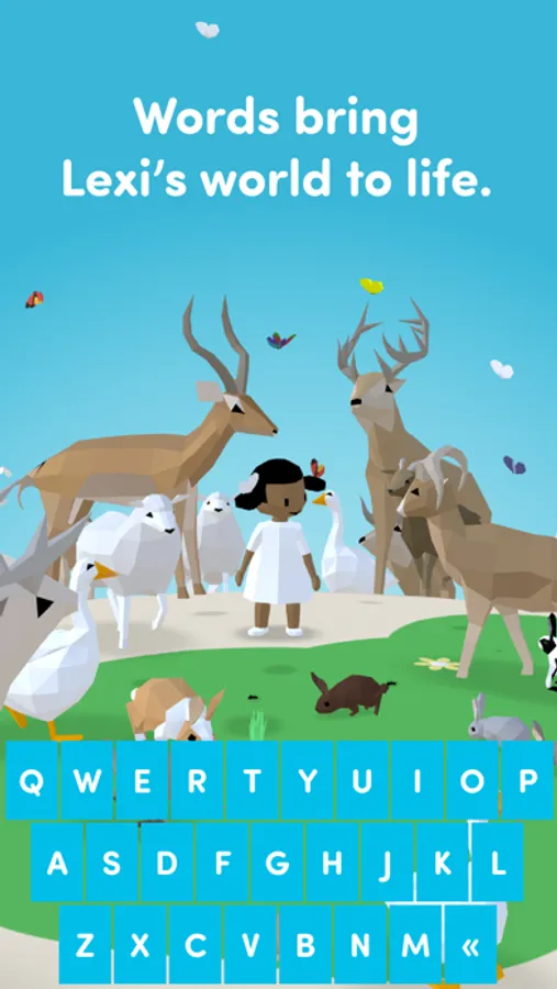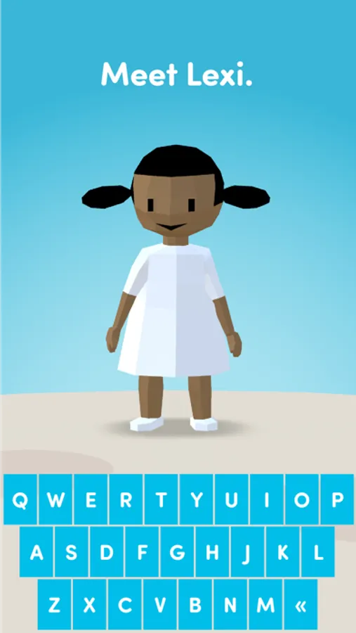 Lexi lives on a tiny planet. Using a special keyboard that only allows words that exist to be entered, children can add animals and food to the world. Type "bunny" and a small bunny appears. Type "carrot" so Lexi can feed the bunny.