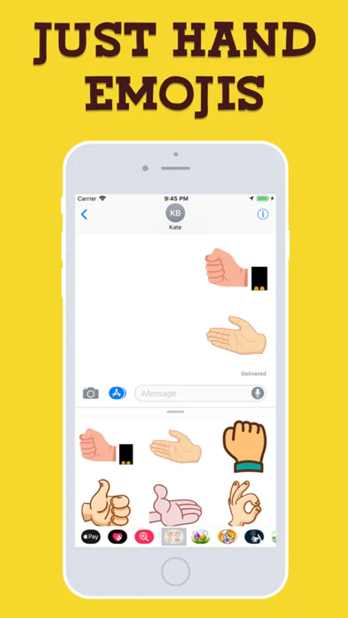 • Tap the icon on the lower left corner and then the plus icon to access the App Store for iMessage. Tap Manage tab and find Just Hand Emojis to add it.