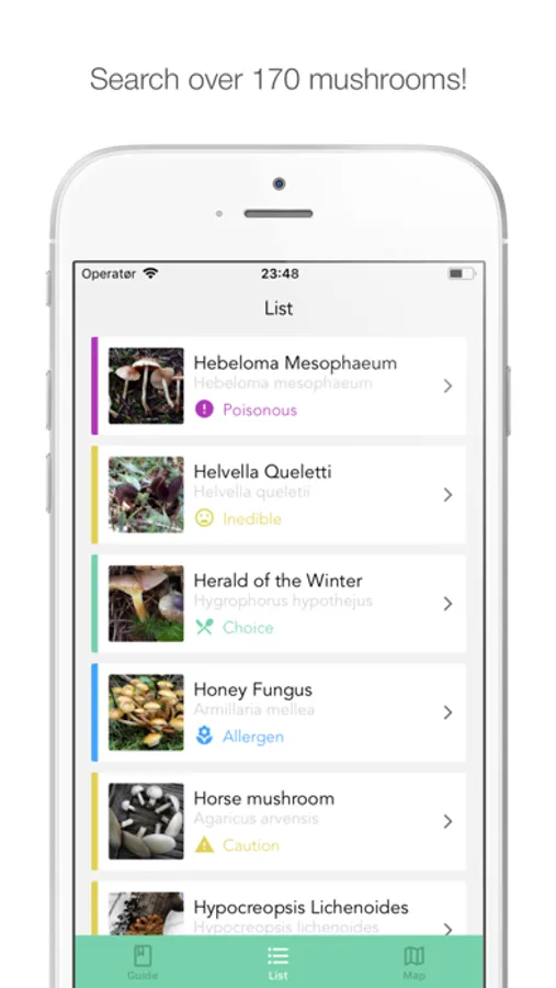 With over 170 mushrooms and 500 images Mushy is by far the most complete and detailed mushroom guide on the AppStore with a lower price than the alternatives! In addition, it can be fully utilized without an internet connection as everything is stored locally.