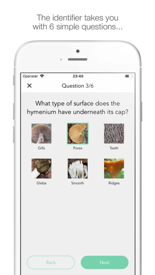 The guide is designed with six simple questions. You answer each of the questions to the best of you ability with the appearance of your mushroom in mind and our algorithm grants points to every mushroom depending on the answers. This information is then calculated and compiled and you are presented with a result where every mushroom is ranked by probability. It has never been easier!