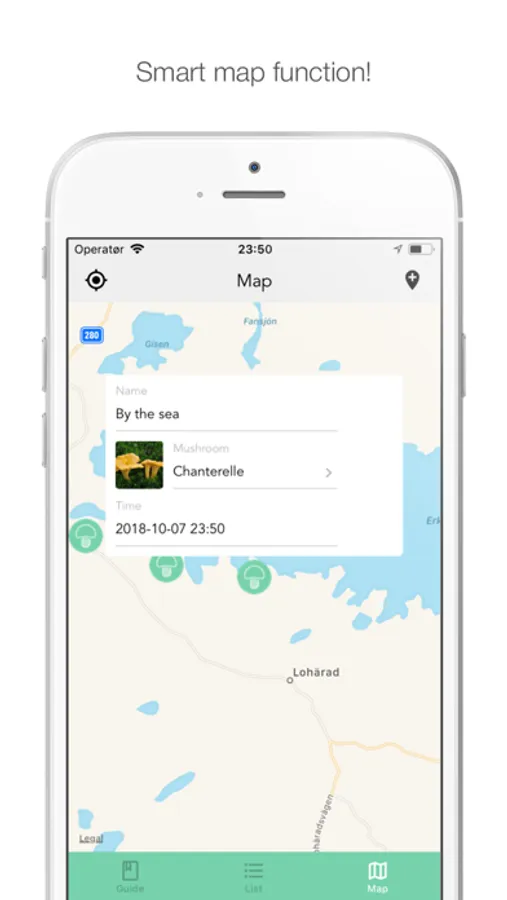 On a forest walk and just found a golden place for chanterelles you do not want to forget? Open up Mushy's smart map functionality and easily place a marker on your current location (or somewhere else) and note what mushroom you found! All information is saved completely local on your phone which means that it is you, and only you, that knows where your secret places are! Never let a great place be forgotten again!
