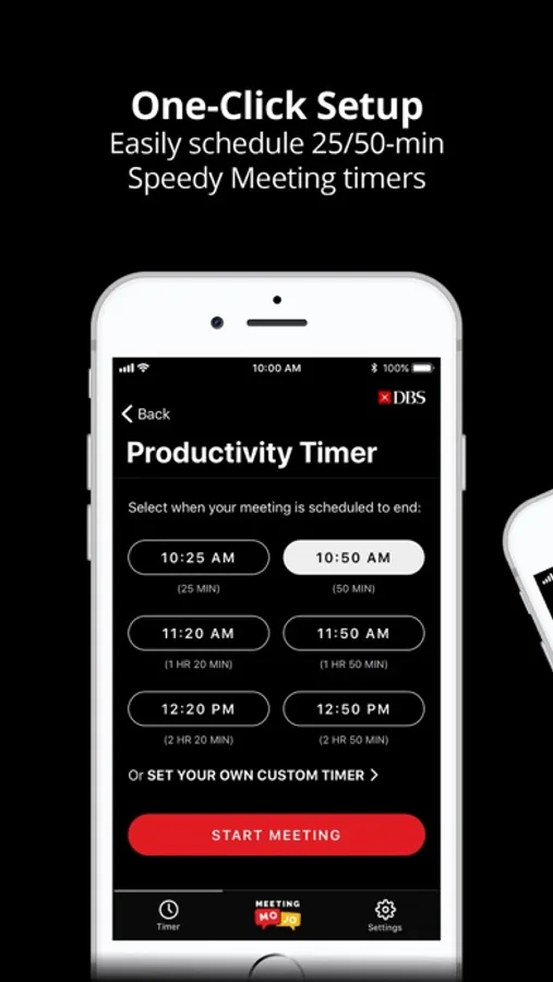 With the Meeting MOJO Productivity Timer, you can schedule speedy meetings by setting either 25- or 50-minute sessions. It means making the usual 30-minute meetings end 5 minutes early, and 1 hour or longer meetings end 10 minutes early.