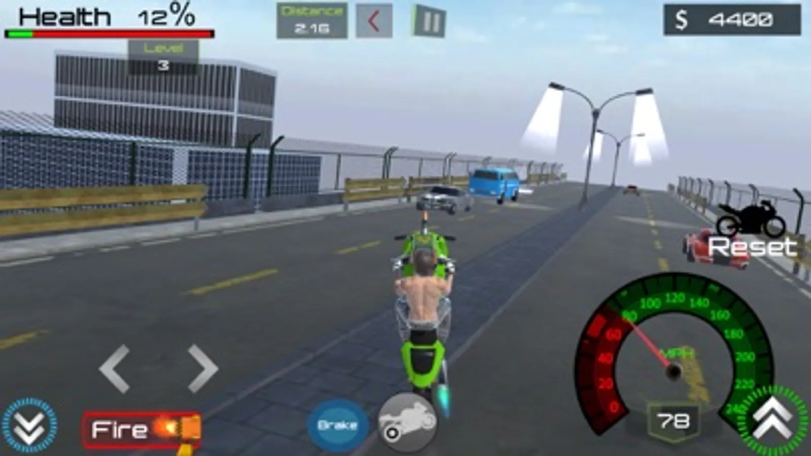 We have given a dedicated Wheelie button so you can perform stunts. Bike stunts are very easy to pull off.
