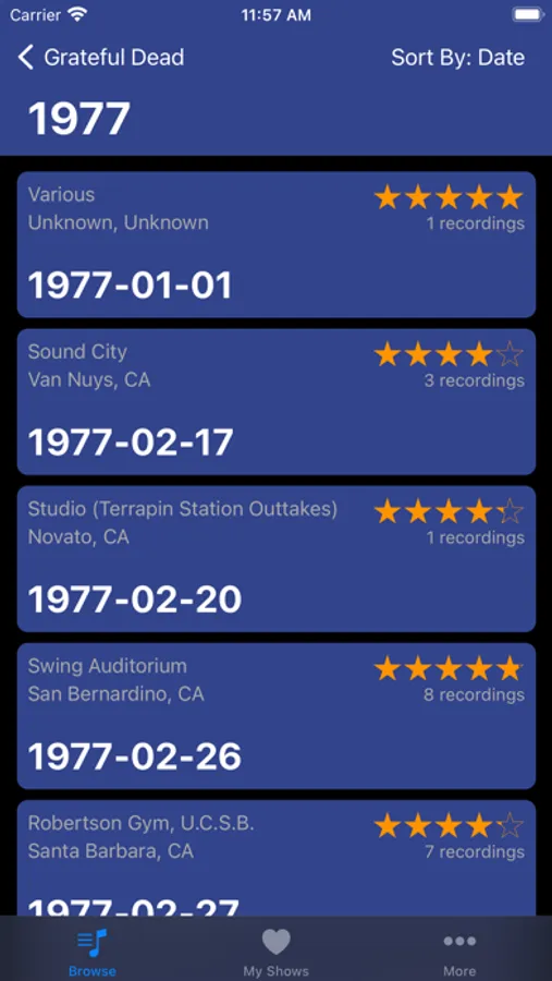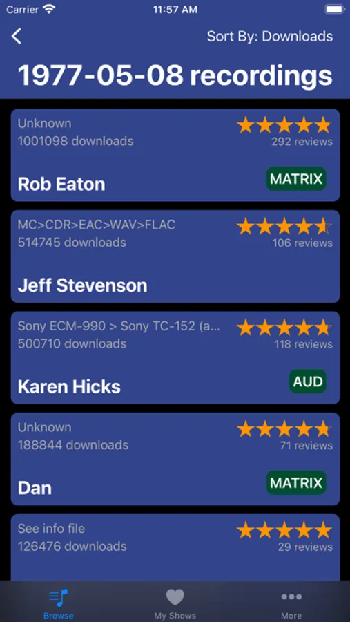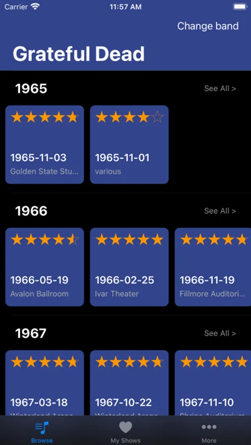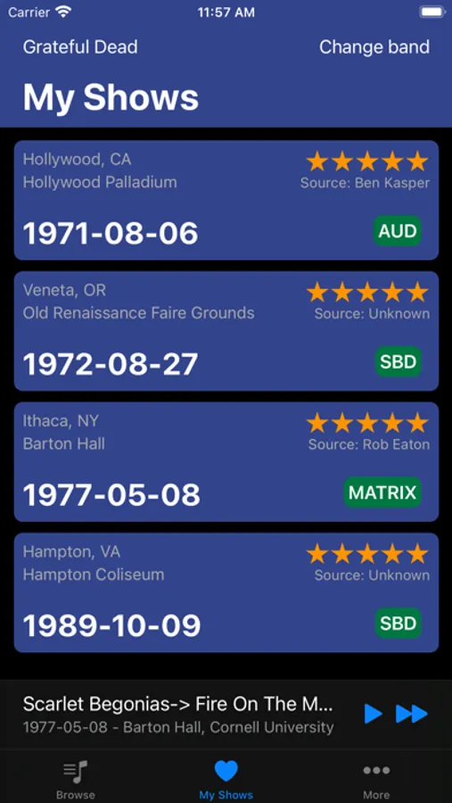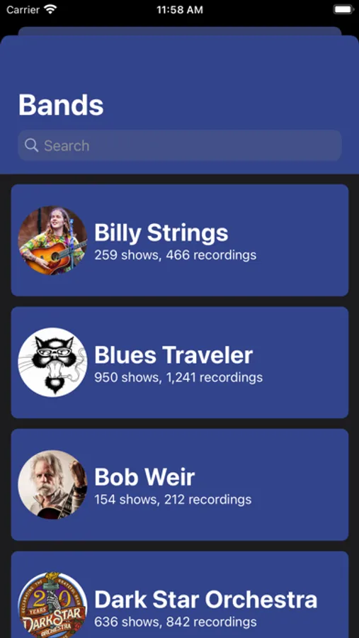 - 30+ bands, 20k+ shows, more being added regularly
