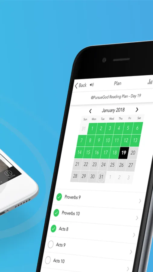 * Free Audio Bible: Click listen and you are instantly listening to the daily devotional plan. You can also look up any passage you want, the listen tab is in the bottom right hand corner at all times.
