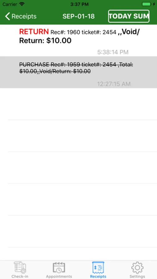 This App Allows To Check Today Customer Check-ins, Appointments and Receipts.