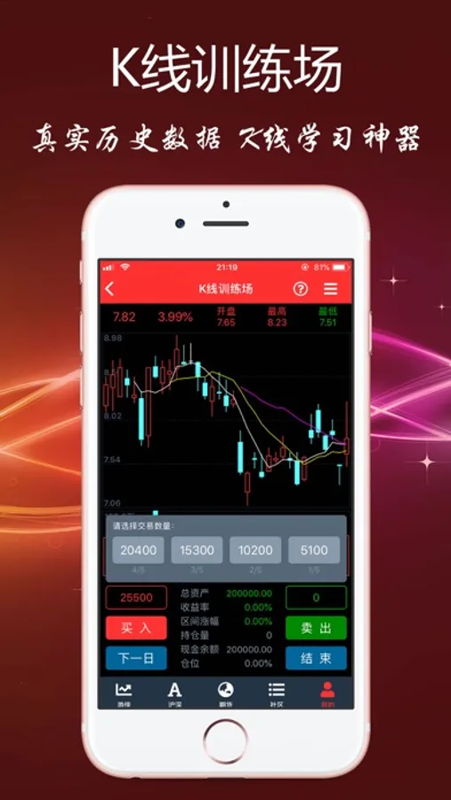 K线对于金融领域是个经典符号,无论股票还是期货,所以必须正确认识并理解K线。游侠股市“K线训练场”为投资者提供了一个快速模拟K线走势的工具,所有随机出现的K线均为真实的A股历史数据,是投资者学习K线形态、验证理论知识、增强盘感、磨练心态的高效工具。