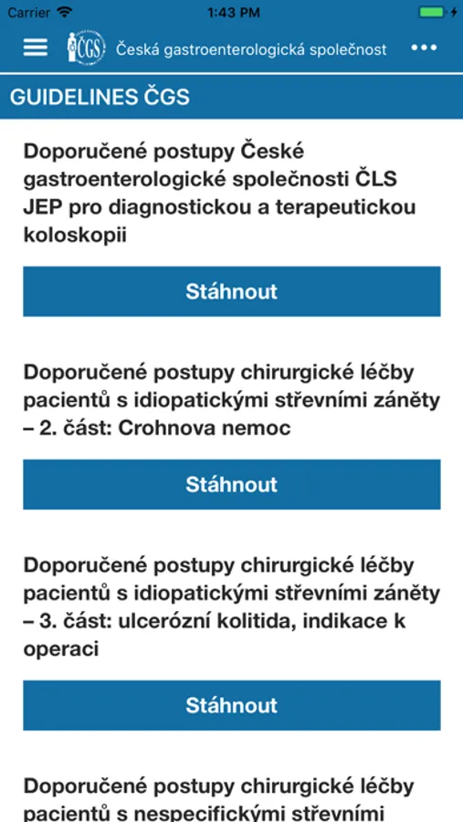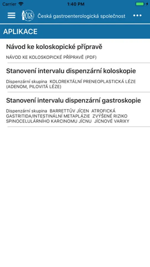 Aplikace Česká gastroenterologická společnost obsahuje info o lékařské společnosti. V aplikaci naleznete základní informace, kalendář nadcházejících událostí či důležité kontakty. Najdete v ní také archív videí, dotazník, guidelines ČGS a guidelines ESGE. Aplikace je tak šikovným pomocníkem přímo do Vaší kapsy.