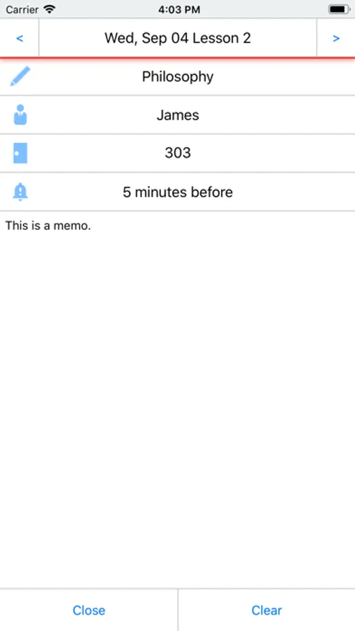 -Starting lessson notification (5, 10, 15, 30, 60 minutes before) can be set.