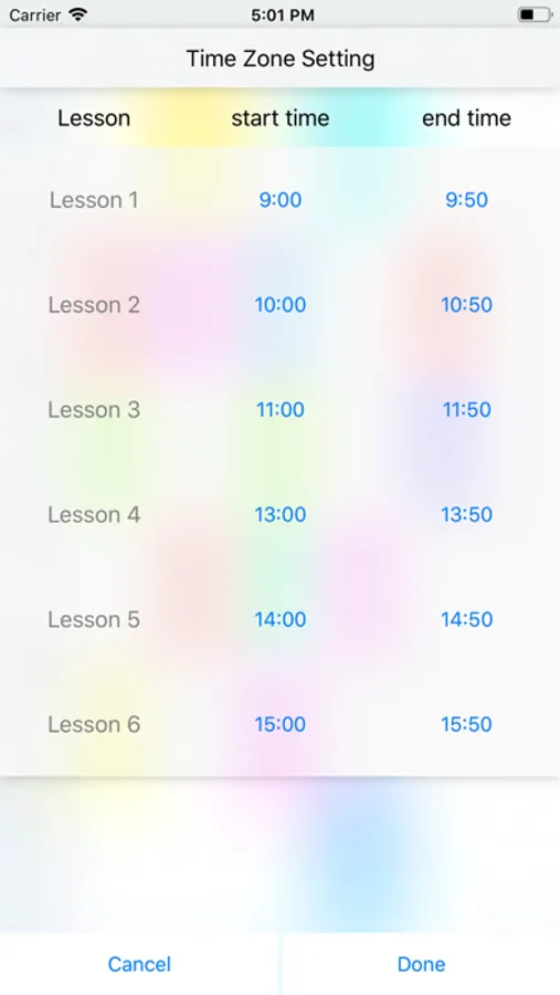 -The setting of each time zone can be freely set by tapping the time column on the left side of the screen.