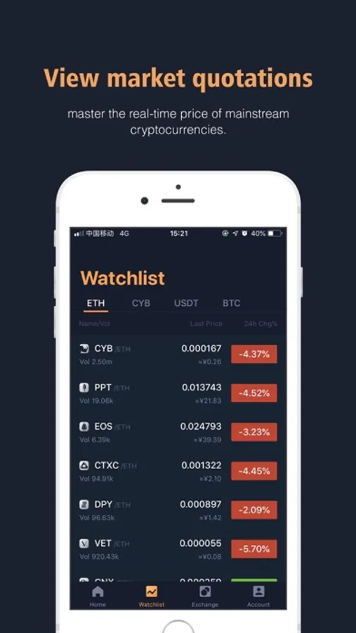 1. View market state: check the real-time status of the price fluctuation of BTC, ETH, CYB and many other cryptocurrencies.