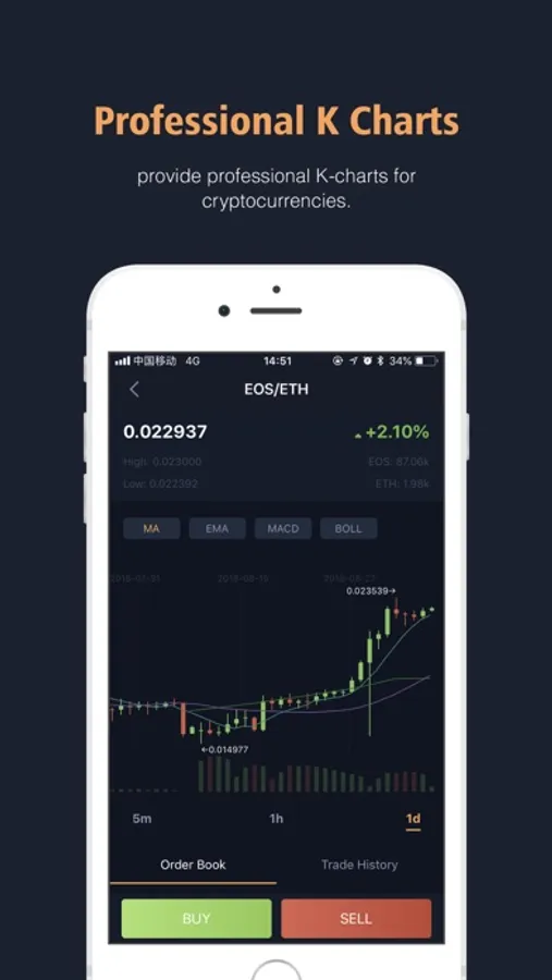2. Professional K-charts: provide professional K-charts for cryptocurrencies.