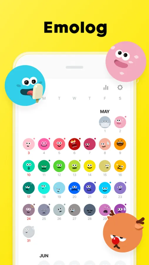 Select your emoji to sum up your day and record it, simple as that!