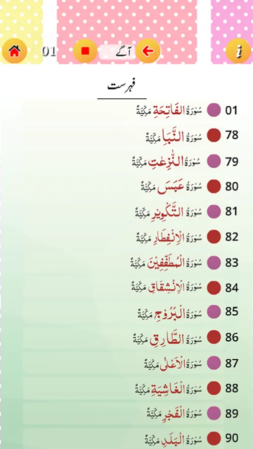 The Quran is divided into 30 chapters also known as thirty Juz's. In this app 30 PARA which is also known as Juz Amma is presented.