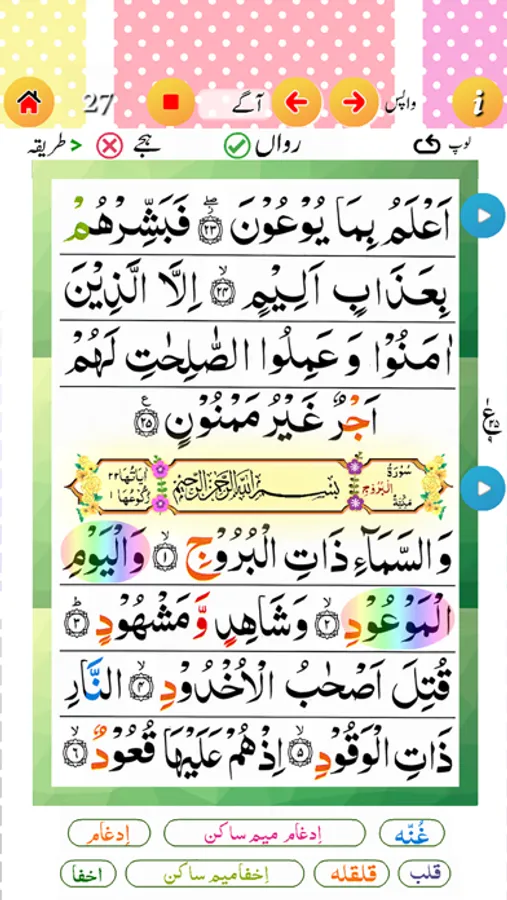 हिज्जे के साथ कुरान के 30 वें अध्याय (अम्मा पारा या जुज़ अम्मा) ध्वनि के साथ प्रस्तुत किया गया है।