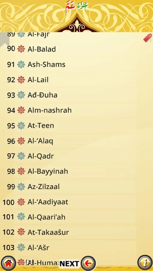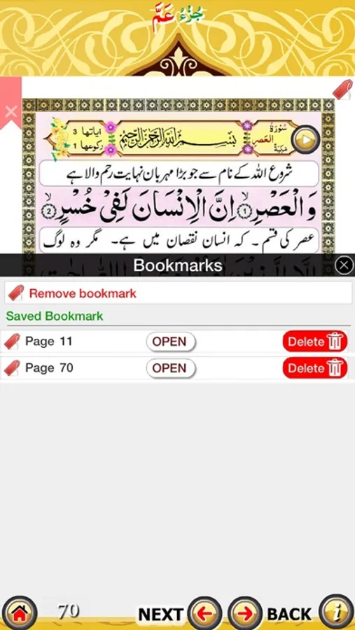 तर्जुमा के साथ कुरान के 30 वें अध्याय (अम्मा पारा या जुज़ अम्मा) प्रस्तुत किया गया है।