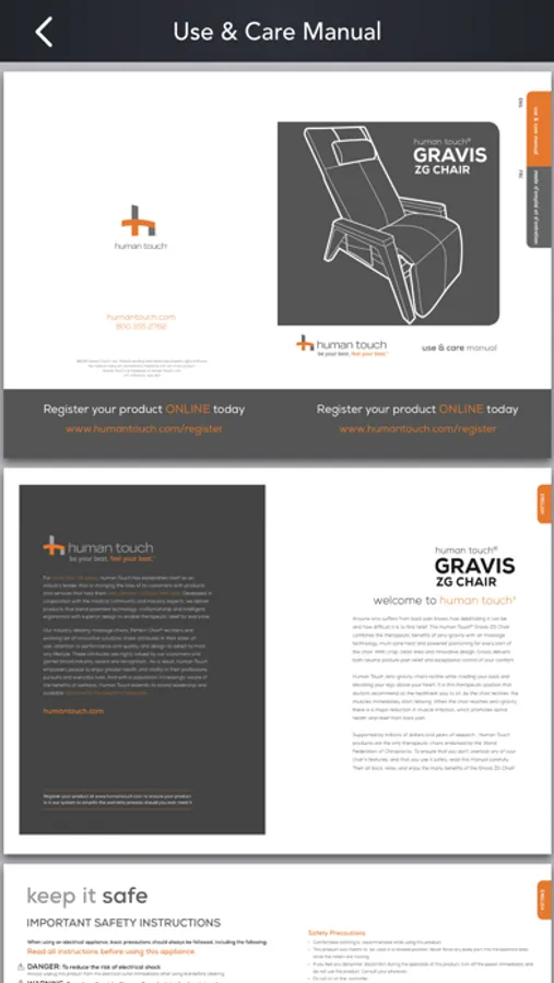 The Gravis App is an elegant and functional way to control your Human Touch® Gravis ZG Chair. With a wide array of features presented in a sophisticated design, you have a smart, intuitive, controller at your fingertips. Simply connect your device via Bluetooth to your Gravis ZG Chair and you are ready to sit back, relax, and completely enjoy your Human Touch experience.