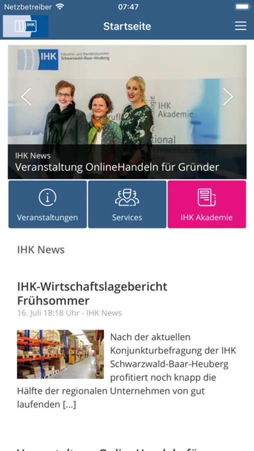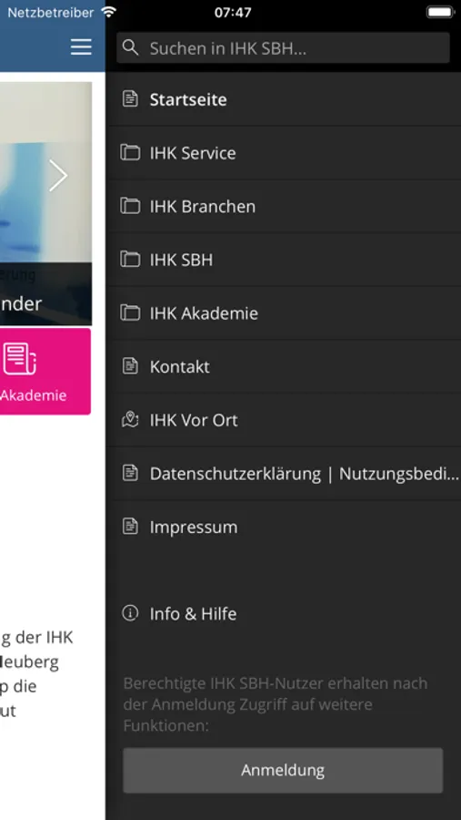 • Auch mobil sind Sie immer aktuell am Angebot der IHK SBH