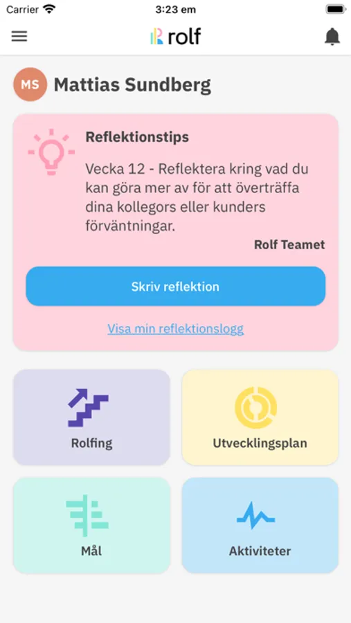 The App and digital tool Rolf consists of the modules Reflection, Development and Coaching, and suits you regardless of which leadership model you follow. Rolf is really nothing new. It just simplifies what you already know. That success is created by committed employees, goal fulfillment and the essence of transparency. Our vision is that all organizations should be developed through sustainable, committed employees
