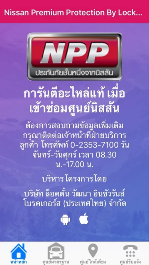 Nissan Premium Protection ดูแลลูกค้าและบริการศูนย์ซ่อมมาตรฐานของนิสสันใกล้บ้านท่าน พร้อมบริการศูนย์รับแจ้งเหตุตลอด 24 ชม.