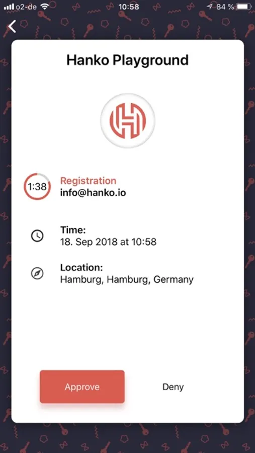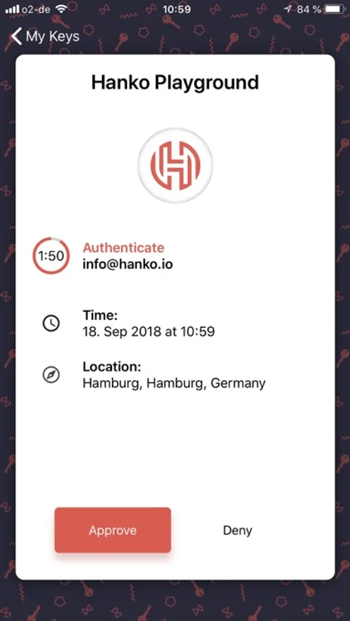 Add Hanko Authenticator to your account to sign in to websites with just your username—completely without a password. Simply approve the authentication request with the Hanko Authenticator app on your smartphone.