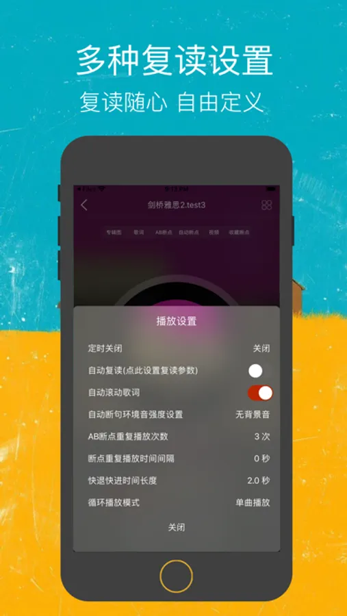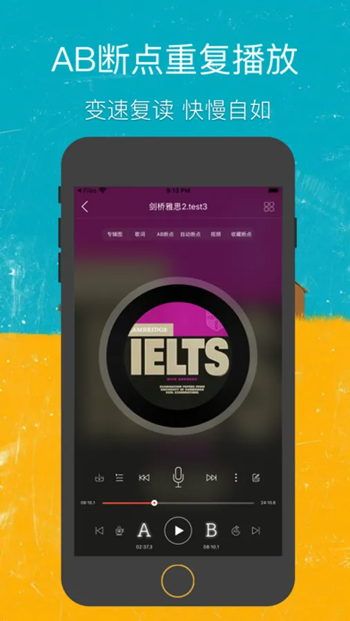 2. AB break point repeat. The AB breakpoint can be set freely, and the number of times of repeated playback at the breakpoint can be set freely. The key content can be listened to repeatedly and broken each.