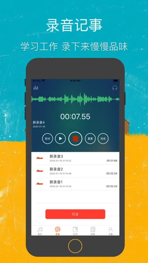 5. Record. Simple and efficient recorder, with listening function, recording completed recording can be opened with repeat mode and can export MP3 format recording file, class listening, important meetings in the work, voice record all done;