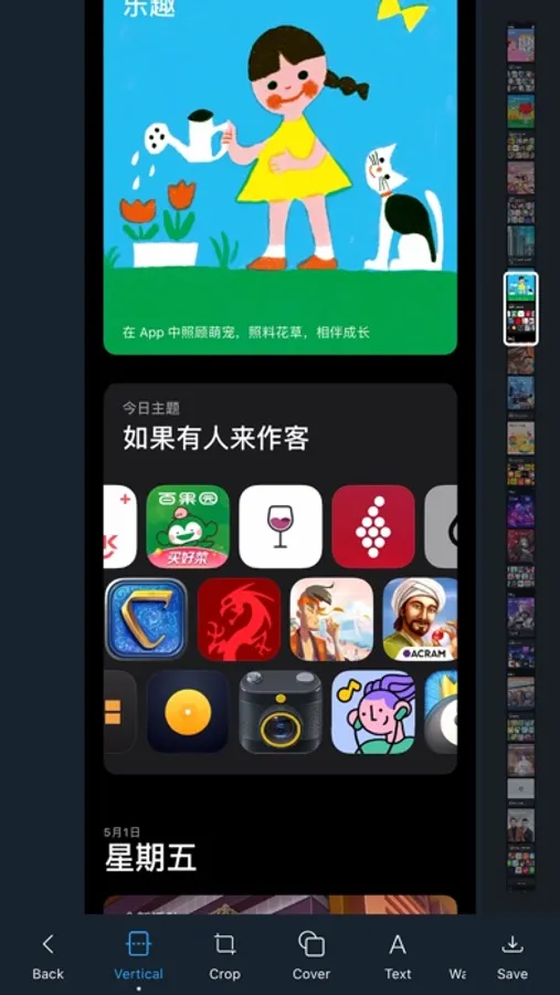 - Vertical stitching: combine multiple pictures into one to facilitate your saving and sharing.