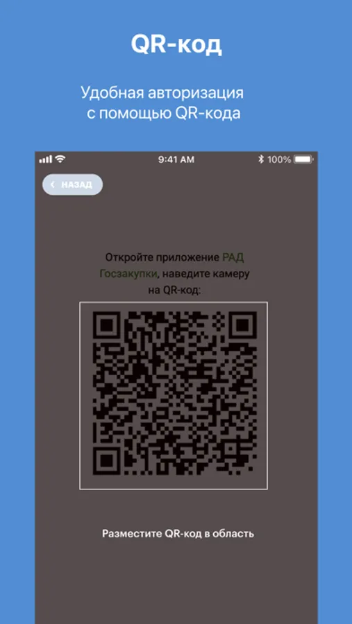Чтобы войти в приложение достаточно один раз получить qr-код в Личном кабинете веб-версии площадки в разделе "Мой кабинет" - "Настройки" - "Мобильное приложение" и считать его с помощью камеры мобильного устройства.