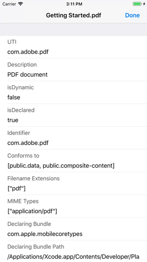 When you create a document-based app, it is sometimes helpful to know UTIs declared by third-party apps. Firstly, they can be useful as an example of correct UTI declaration. Secondly, they help to make your app compatible with third-party file formats (you can see which UTIs to import in your app). Finally, UTI Inspector helps in debugging any issues related to conflicting UTI declarations.